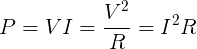 전력과 전압, 전류, 저항과의 비례 관계는 위의 수식을 참조합니다.