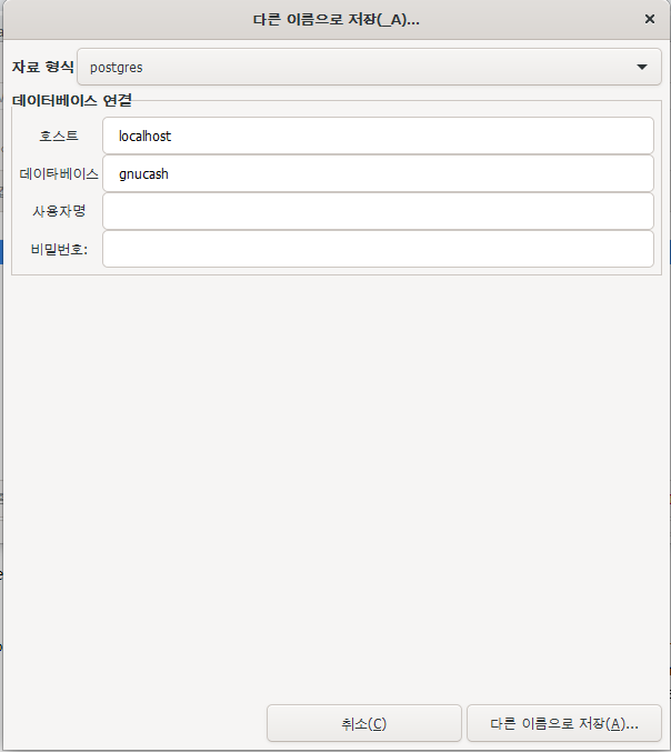 그림 2.3. MySQL이나 PostgreSQL를 선택했을 때의 저장 화면
