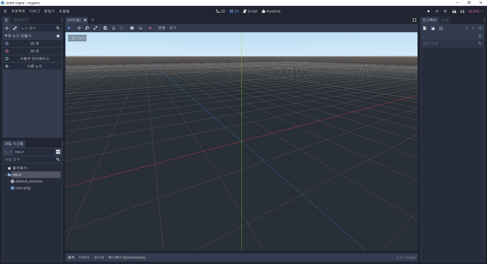 새 게임 프로젝트의 편집 화면이다.