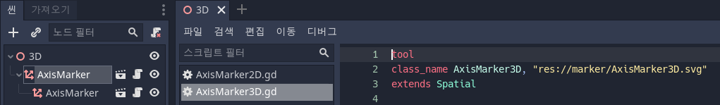 위의 그림은 스크립트에 클래스 이름을 부여하면서 아이콘을 지정한 것으로 해당 스크립트를 사용하는 노드의 아이콘이 편집기에서 지정한 것으로 변경된 것을 확인할 수 있다. 아이콘을 지정하지 않으면 상속한 부모 클래스의 아이콘을 표시한다.