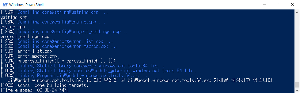 앞서 내려받은 소스 코드 폴더로(cd sorc/godot) 이동한다. 빌드 명령은 아래와 같다.